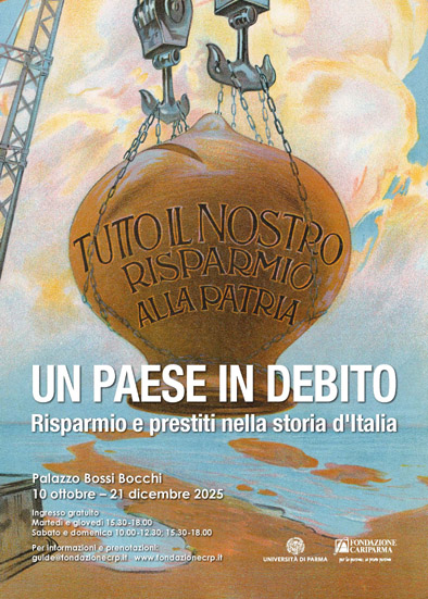 All’interno di questo contesto si muove la mostra Un Paese in debito. Risparmio e prestiti nella storia d’Italia che Fondazione Cariparma, in collaborazione con l’Università di Parma, nella sua sede di Palazzo Bossi Bocchi, propone dal 10 ottobre al 21 dicembre 2025. L’esposizione è a cura dei docenti dell'Università di Parma Piergiovanni Genovesi e Stefano Magagnoli e di Francesca Magri di Fondazione Cariparma; hanno collaborato Stefano Campagna, Fabrizio Solieri e il progetto Hemera 1918-1922.